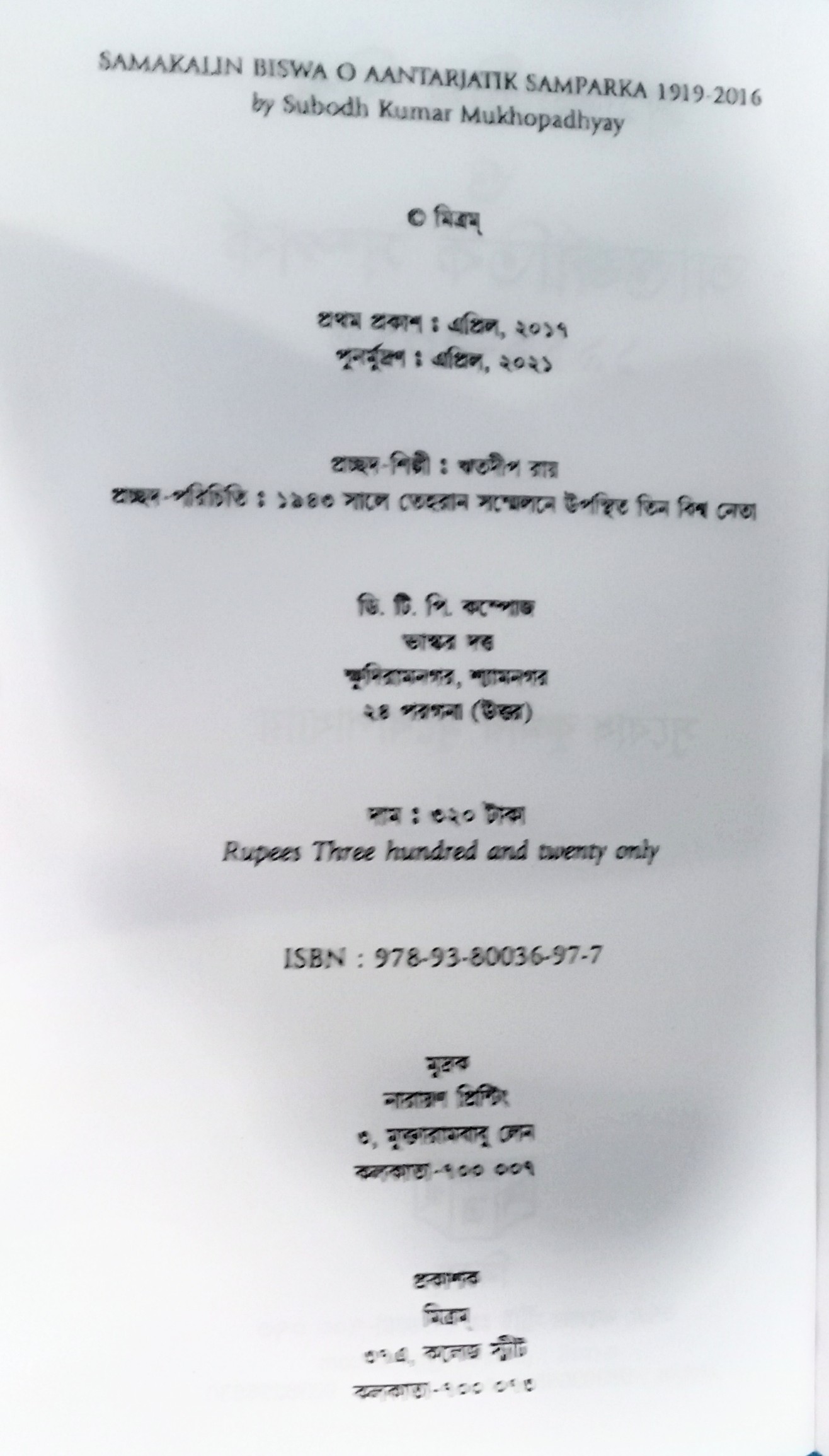 Description: Samakalin Biswa O Antarjatik Samparka 1919 – 2016 By Subodh Kumar Mukhopadhyay New Edition Mitram Publication