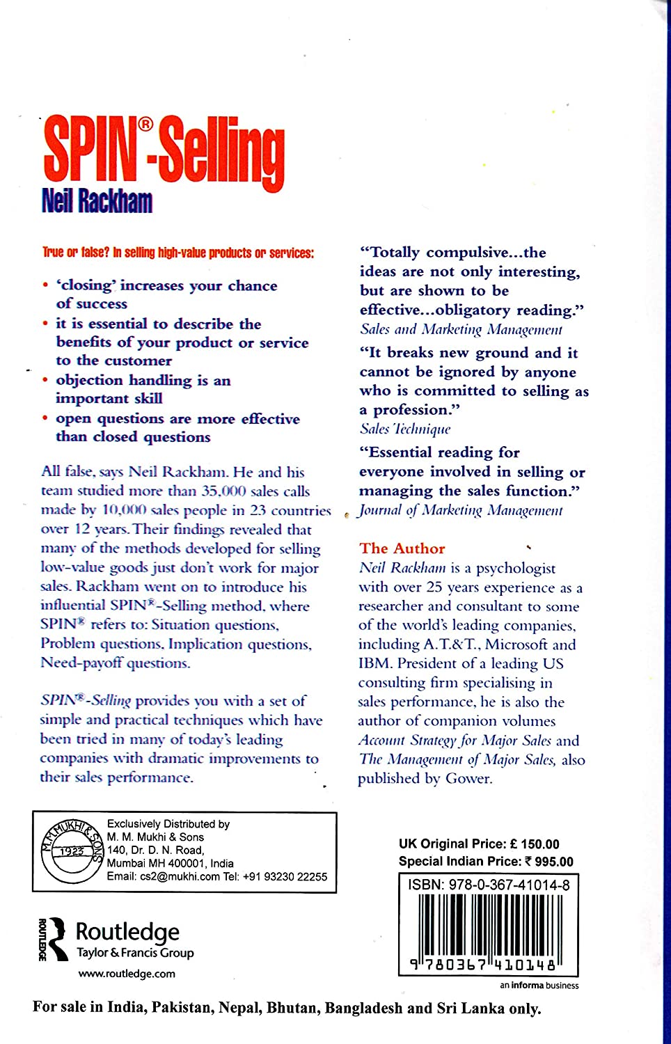 Description: Spin Selling By Neil Rackham
